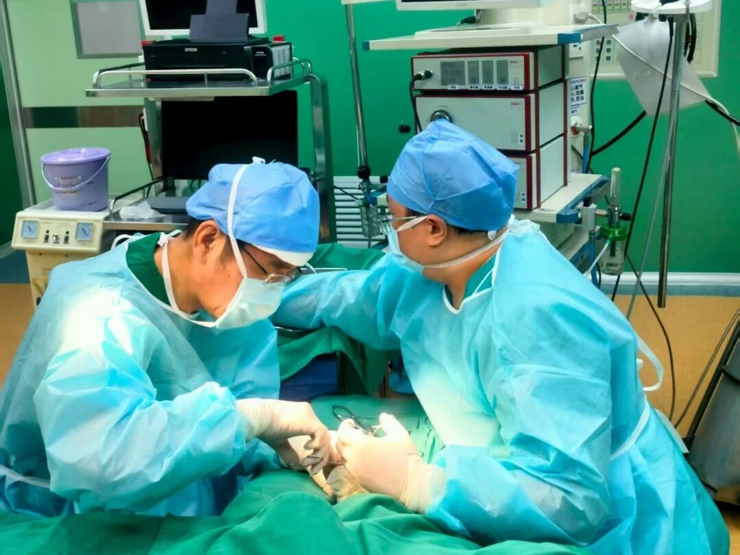手术当天,由王主任主刀,薛松医生协助,在麻醉团队、手术室医护团队的默契配合下,手术顺利完成。